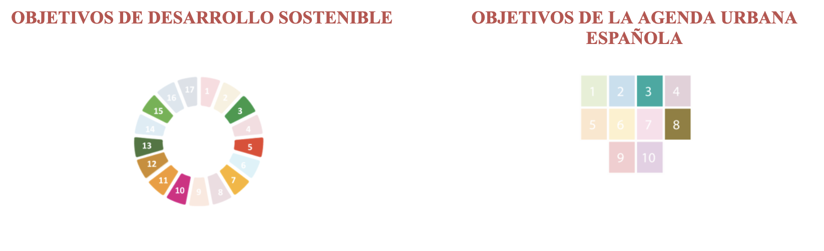 De otro lado, los objetivos de desarrollo sostenible que también tienen representatividad y su encaje está transversalizado en este área temática, son el ODS 3 Salud y bienestar, ya que el diseño de las ciudades debe garantizar una vida sana y promover el bienestar en todas las edades de toda la ciudadanía para un desarrollo sostenible, el ODS 5 Igualdad de Género y el ODS 10 Reducción de las desigualdades, ya que la ordenación de las ciudades y asentamientos debe garantizar el principio universal de igualdad entre mujeres y hombres, atendiendo a crecimientos compactos, a fin de dar respuesta a las necesidades reales y potenciales garantizando un uso eficiente y equilibrado favoreciendo la mejora de la calidad de vida en atención a parámetros de género y promoviendo el equilibrio y la cohesión social como elemento clave para un desarrollo sostenible y equilibrado.
