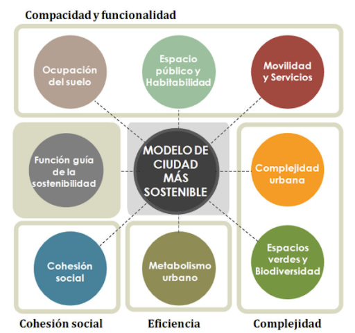 En este eje de integración, por lo tanto, se aborda LA CIUDAD como elemento que se compone por una serie de sistemas físicos que configuran el modelo de ciudad, donde toma protagonismo la FUNCIONALIDAD, LA HABITABILIDAD Y LA EFICIENCIA, en tanto que un Modelo de ciudad Equilibrada, eficiente y funcional debe tener en cuenta los condicionantes de masa crítica de la población, la actividad, la habitabilidad de los espacios públicos, la autosuficiencia energética, hídrica y de los materiales, así como la igualdad y proximidad en las dotaciones, equipamientos y servicios, para adecuar el planeamiento urbanístico a un modelo de ciudad más sostenible, más compacto en su morfología, más complejo y denso en su organización y configuración, pero en definitiva más amable y habitable.