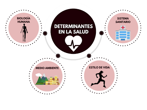 Figura 1319. Determinantes de la salud. Fuente: elaboración propia a partir del Modelo holístico de Laframbroise (1973) y desarrollado posteriormente por Marc Lalonde (1974).