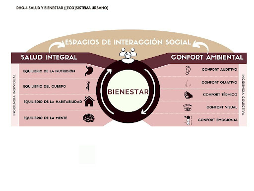 Figura 1297. Relación metodológica de la Salud Integral, los Espacios de Interacción Social y el Confort Ambiental para fortalecer el Bienestar de las personas desde la planificación urbanística. Elaboración propia.