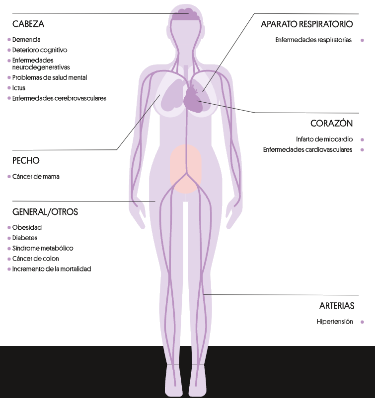Figura 135. Efectos en la salud por la falta de la actividad física. Fuente: Instituto de Salud Global de Barcelona (ISGlobal). https://www.isglobal.org