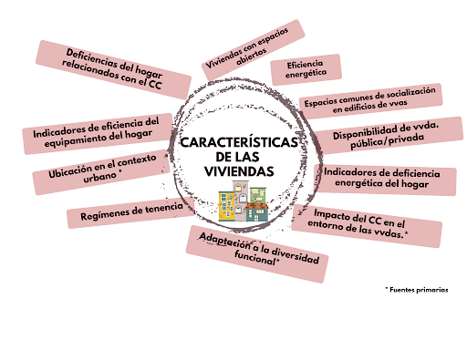 Sirva, a modo de avance, la siguiente figura en la que se proponen algunos de los indicadores a tomar en cuenta para la detección de la vulnerabilidad de las personas con respecto al CC, en este caso con respecto a la vivienda.