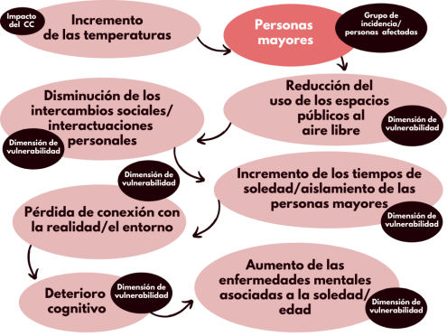 Las personas, de forma general, evitarán estar expuestas a temperaturas elevadas por razones de confort y/o de salud, lo que puede agravar aún más la segregación que puede devenirse de este impacto hacia las personas más frágiles, por edad, estado de salud, movilidad, quienes podrían ver reducidas en mayor medida las posibilidades de uso que pueden hacer de los espacios de interacción.