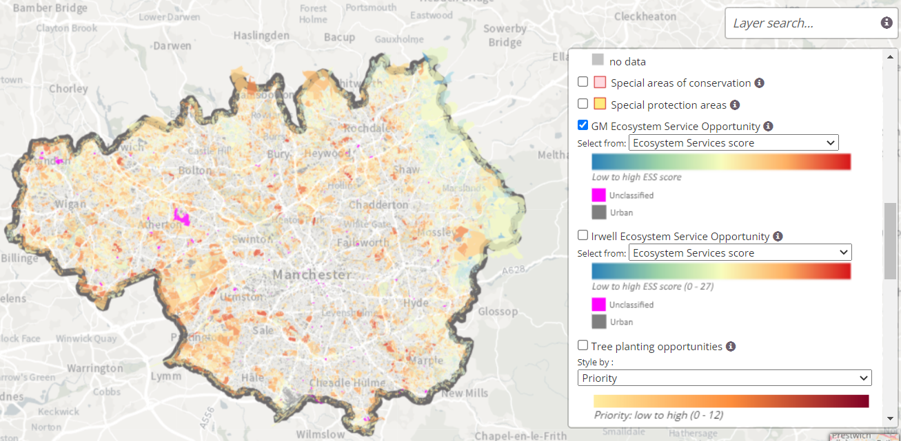 Figura 8 Mapa de Oportunidades de Servicios Ecosistémicos. Manchester. Visor GMODING