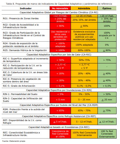 Y aportando la siguiente propuesta de Indicadores de Capacidad Adaptativa y Parámetros de referencia: