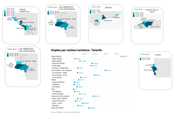 Las siguientes figuras muestran a partir de los datos de viajeros alojados y empleo, cuáles son las zonas más vulnerables desde el punto de vista económico.