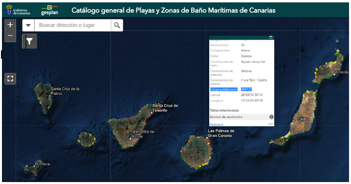 En el catálogo elaborado por la Dirección, General de Seguridad y Emergencias, muestra la carga población para cada playa y zona de baño marítima de Canarias,