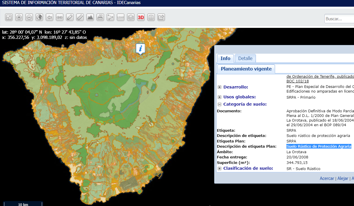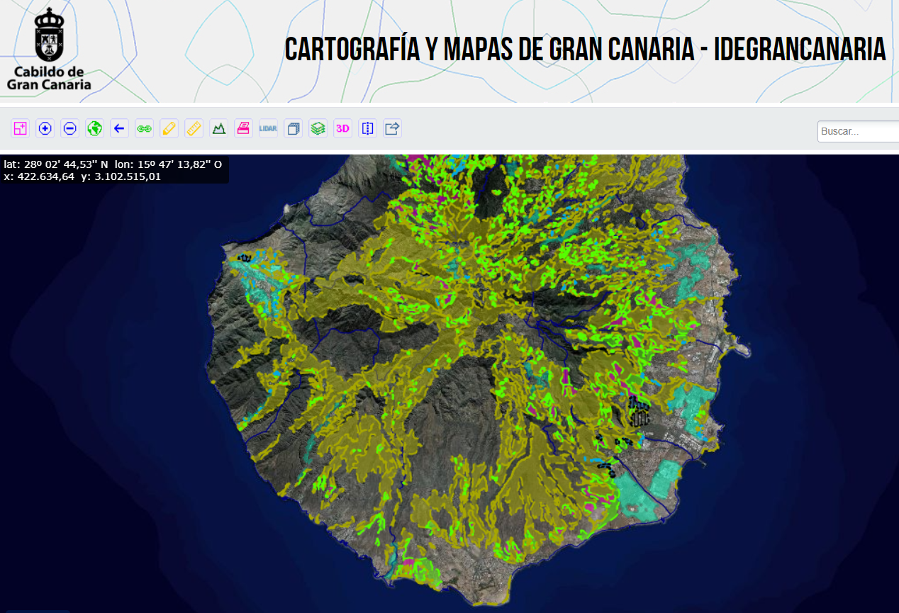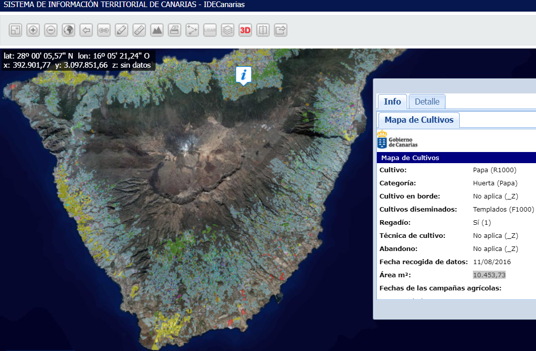El Gobierno de Canarias publica los datos del mapa de cultivos y de clasificación del suelo en formato georeferenciado, siendo también posible la