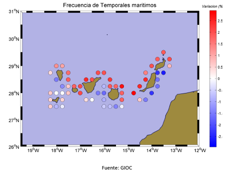 Los datos sobre la frecuencia de los temporales marítimos que tienen lugar en Canarias, es publicada por el Grupo de Ingeniería Oceanográfico y de Costas (GIOC), que a partir de series históricas realiza una estimación.