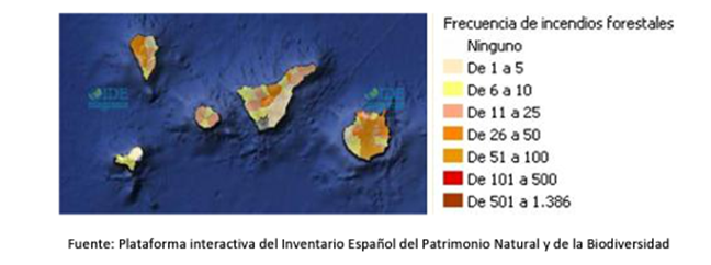 La información de la frecuencia de incendios forestales hasta el año 2015, se encuentra disponible a través de la Plataforma interactiva del Inventario Español del Patrimonio Natural y de la Biodiversidad, del anteriormente denominado MAGRAMA, que publicaba la información recibida por las comunidades autónomas, e integrada en la Base de Datos Nacional de Incendios Forestales (EGIF).