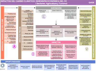 Para cada sector se ha elaborado un esquema de impactos de cambio climático dada la necesidad de su tratamiento por separado al resto de contenidos del eje de actuación.