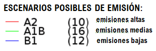 En la gráfica se observa por un lado, cómo en la serie histórica, la variable “aumento de temperatura”, registra durante el período 1970 – 2000 una variabilidad menor que para la serie proyectada a partir del año 2000.