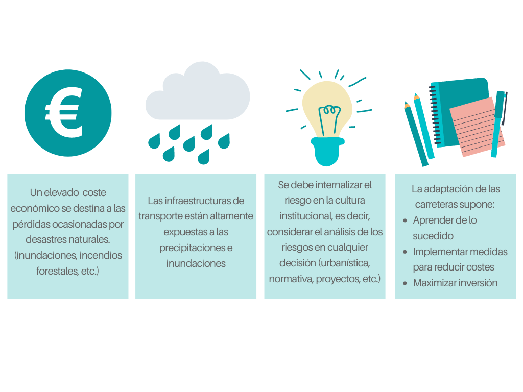 Lo que parece obvio es que si la planificación y el diseño d elas infraestructuras viarias se sigue realizando de la misma forma, sin tener en cuenta las nuvas condiciones climáticas y las posibles consecuencias que se avecinan debido al cambio climático, es muy probable que no logren superar la vida útil para la que fueron diseñadas generando que la infraestructura sea insostenible y la eficiencia económica de las inversiones se ponga en duda.