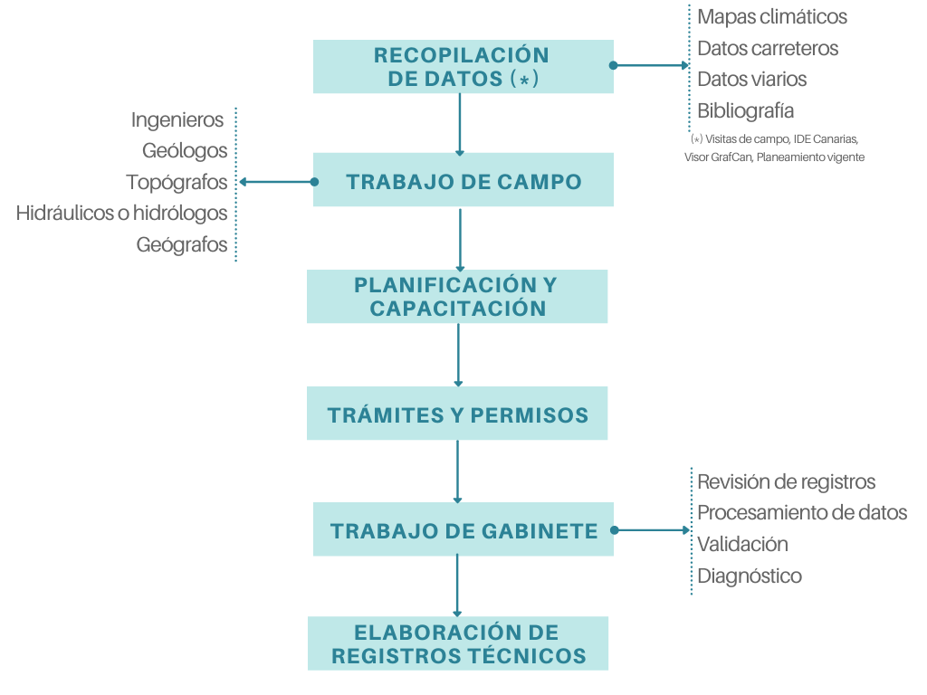 Para conseguir la meta, es preciso analizar previamente cuáles son los impactos y las consecuencias que provoca el cambio climático en las infraestrucutras viarias. Para ello, se ha tomado como referencia el documento “Necesidades de adaptación al cambio climático de la red troncal de infraestructuras de transporte en España” (2013), bajo la coordinación del CEDEX, y a partir de la iniciativa conjunta entre el Ministerio de Fomento y el Ministerio de Agricultura, Alimentación y Medio Ambiente.