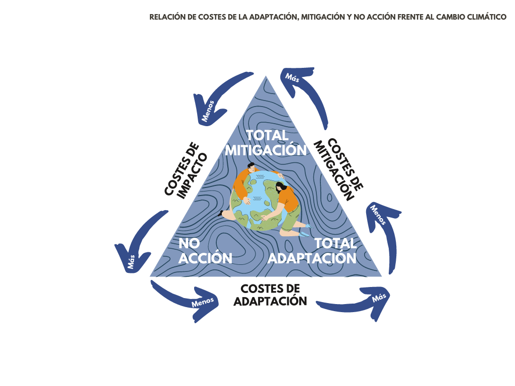 Cabe señalar que aunque se reduzca e incluso se neutralice la emisión de GEI, el cambio climático se encuentra en un estado irreversible, siendo vital implantar en los territorios actuaciones de adaptación para reducir los impactos de éste en los ecosistemas, y en la forma de vida de las personas.