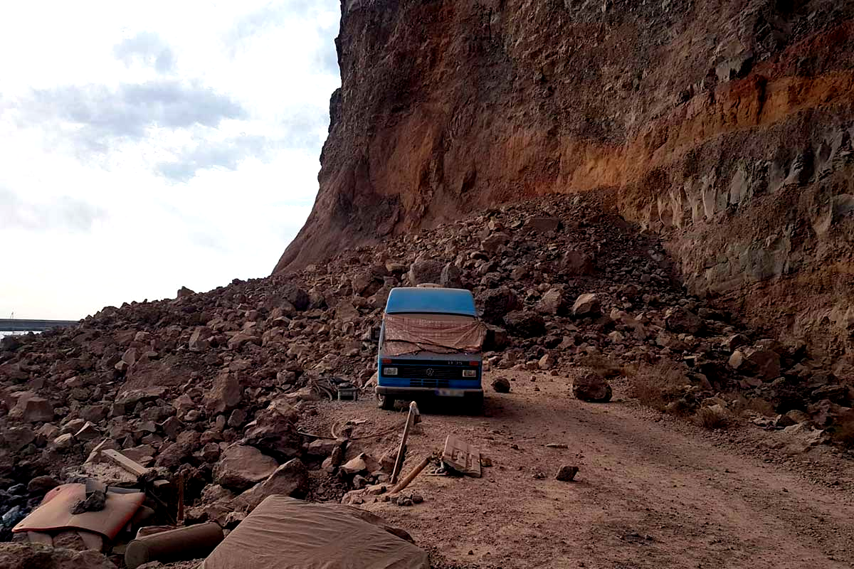 Figura 85 Derrumbe de un acantilado en Valle Hermoso (La Gomera) en noviembre de 2020, afectando a varios vehículos y caravanas. Fuente: Diario de Avisos
