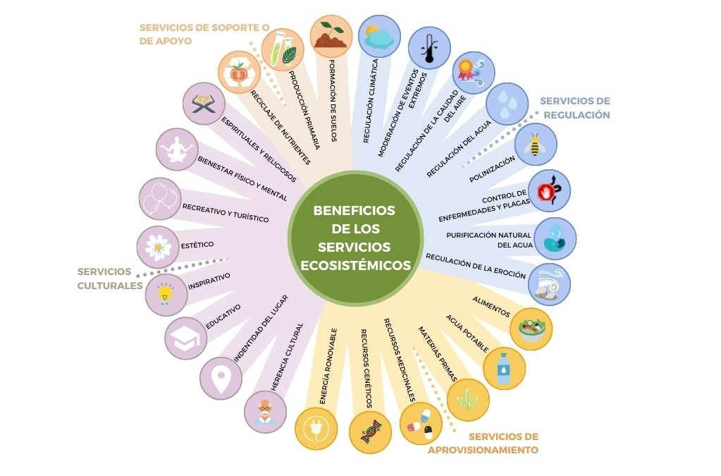 Figura 30. Los beneficios que pueden aportar los servicios ecosistémicos a la sociedad. Fuente: elaboración propia.