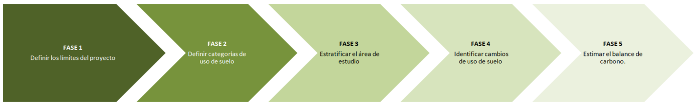 Figura 44. Pasos para estimar el balance de carbono debido a un cambio de uso de suelo. Fuente: Elaboración propia.