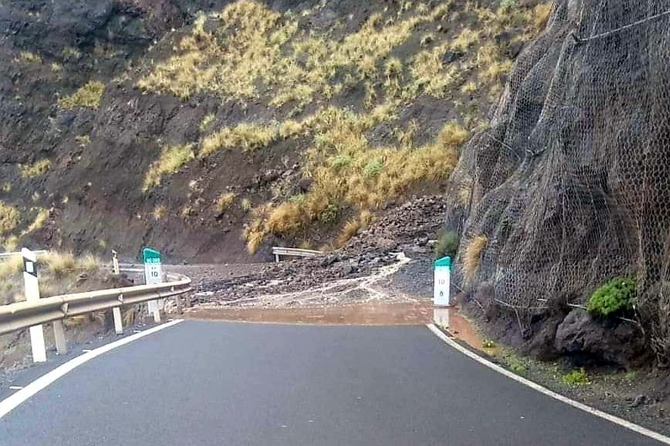 Figura 73. Carretera de La Aldea (Gran Canaria) cerrada por desprendimientos. Fuente: Maspalomas Ahora.