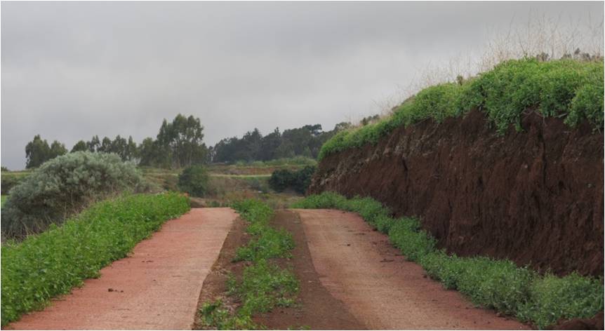 Figura 74. Imagen pista agrícola interior de parcela con doble rodadura, Junquillo, Guía de Gran Canaria. Foto: Carlos C. Álamo.